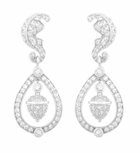 JanKuo Jewelry Silver Tone Royal Family Kate Middleton Inspired Wedding Dangling Earrings Silver Tone with CZ Cubic Zirconia with Gift Box Overview